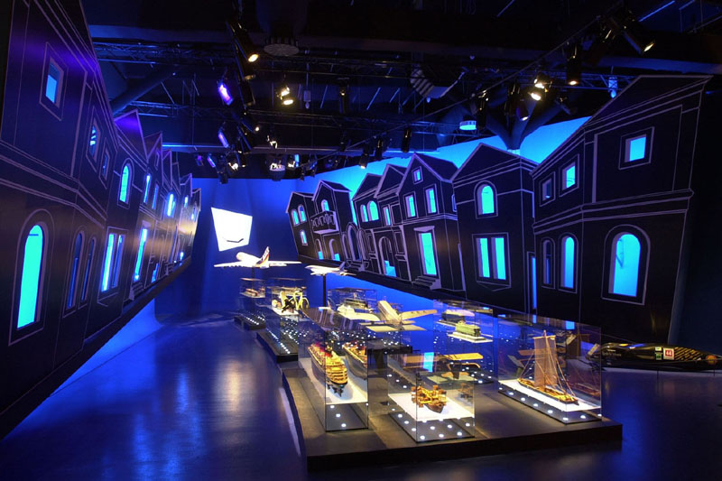 The visitor passes through a dormer window and arrives in an attic where objects aimed at restoring lost mobility to the body are displayed. A tunnel guides the visitor’s steps, through a varied atmosphere, experiencing successive sensations provoked by a color, a material, a sound…